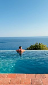 Genieße den Infinity-Pool mit Meerblick, ein Outdoor-Jacuzzi, die finnische Sauna, Gym und auf Wunsch wohltuende Massagen.